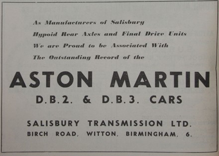 Historic Salisbury Transmission advert for Aston Martin DB2 & DB3 (circa 1952)