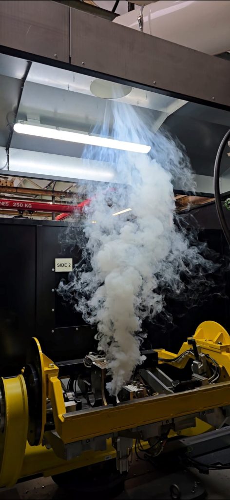 Just as the Aston Martin DB2 represented a leap into the future, so too does this modernised welding line. The cartridge filters don’t just extract fumes — they extract a cleaner, safer, more responsible future for the employees. Below is our smoke capture test.