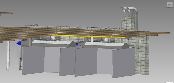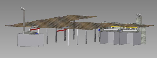 Screenshots of our 3D design, using measurements taken on site for location of the filters.